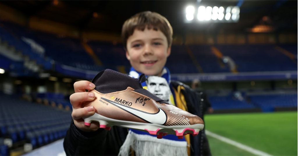 Мудрик привітав земляків і фотографуючись із ними, підписав і подарував спеціальні бутси та футболку Челсі.