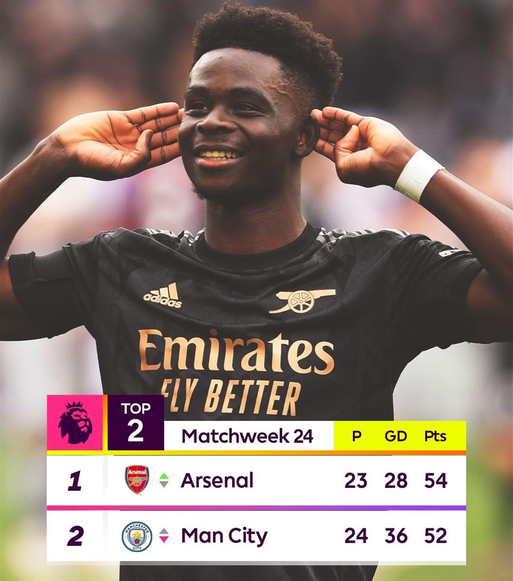 - Арсенал повернув собі лідерство в АПЛ, яке він уперше за довгий час втратив посеред тижня через поразку від Манчестер Сіті. Тим не менш, "містяни" знову другі, а Манчестер Юнайтед відстає від чинного чемпіона лише на три очки за рівної кількості матчів.