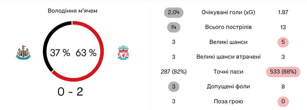 Загалом дуже суперечливий виступ з боку Ліверпуля. Начебто і є гучна перемога в активі, але за наявності всіх необхідних умов все одно не було впевненості, що Ньюкасл вдесятьох раптом не почне процес камбеку. Ліверпуль не грав за рахунком, як багато хто може подумати, адже "червоні" не мали контролю над тим, що відбувається на полі.