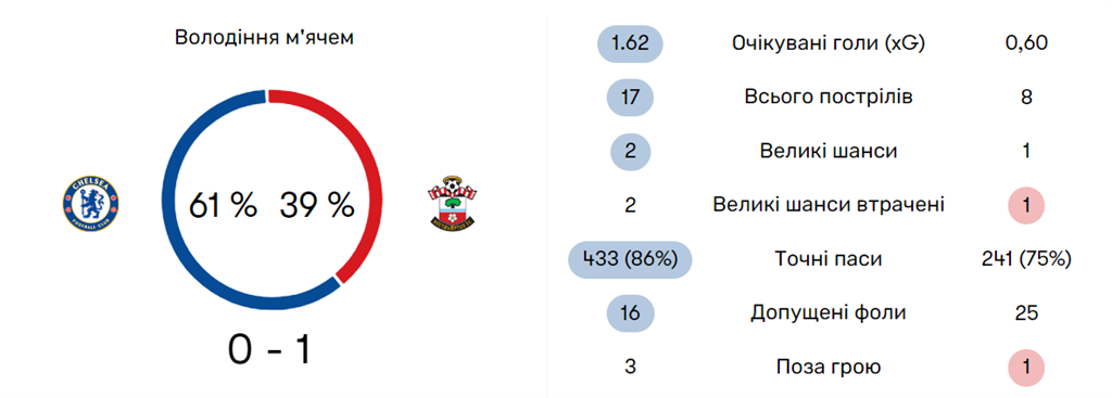 А ось у західній частині Лондона все ще гірше, ніж передбачалося спочатку. Команда Грема Поттера на домашньому стадіоні через єдиний гол Джеймса Ворд-Прауса зазнала поразки від Саутгемптона, який посідає останнє місце в таблиці і, ймовірно, вже думками перебуває в Чемпіоншипі. У десяти матчах з початку року "сині" здобули лише одну перемогу, а тепер кількість поразок складає рівно половину від загальної кількості.