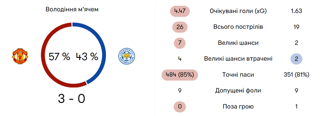 Але впорався зі своїм завданням, де це було потрібно, не лише Де Хеа. Лісандро Мартінес зі своїм низьким зростом спокійно вигравав верхові протистояння, Бруну Фернандеш загострював гру небезпечними передачами, а відгукувався на них невпинний Маркус Рашфорд, дубль якого разом з голом Джейдона Санчо в підсумку завдали Лестеру розгромної поразки з рахунком 3:0.