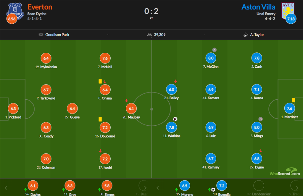 У рамках 25-го туру англійської Прем'єр-ліги Евертон зазнав поразки від Астон Вілли з рахунком 0:2.