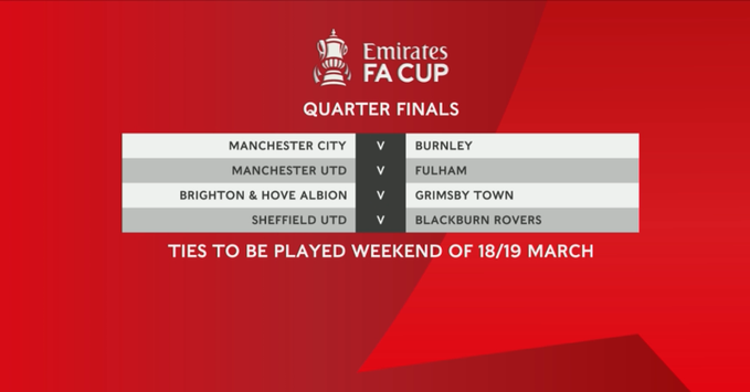 Так, Манчестер Сіті зіграє проти Бернлі, на Манчестер Юнайтед чекає зустріч із Фулгемом, суперником Брайтона стане Грімсбі Таун, а Шеффілд Юнайтед протистоятиме Блекберн Роверс.