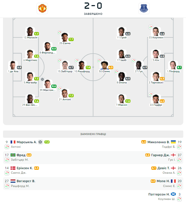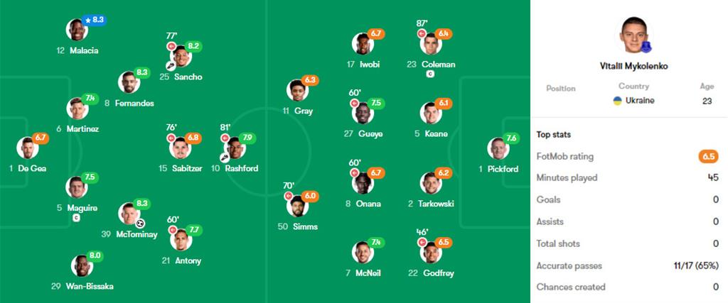 Оцінки Віталія Миколенка за матч проти Манчестер Юнайтед