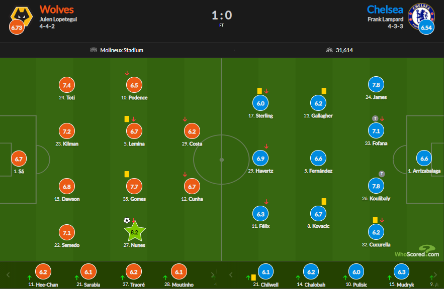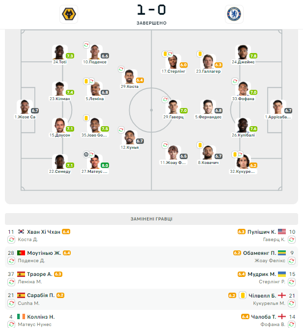 SofaScore - 6,5 (середня в Челсі — 6,87).