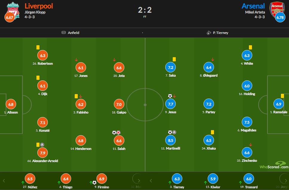 Статистичний портал WhoScored оцінив дії українця в 6,6 балів, що є середньою оцінкою у складі Арсеналу. Найкращим був Габріель Мартінеллі – 8,5 балів.