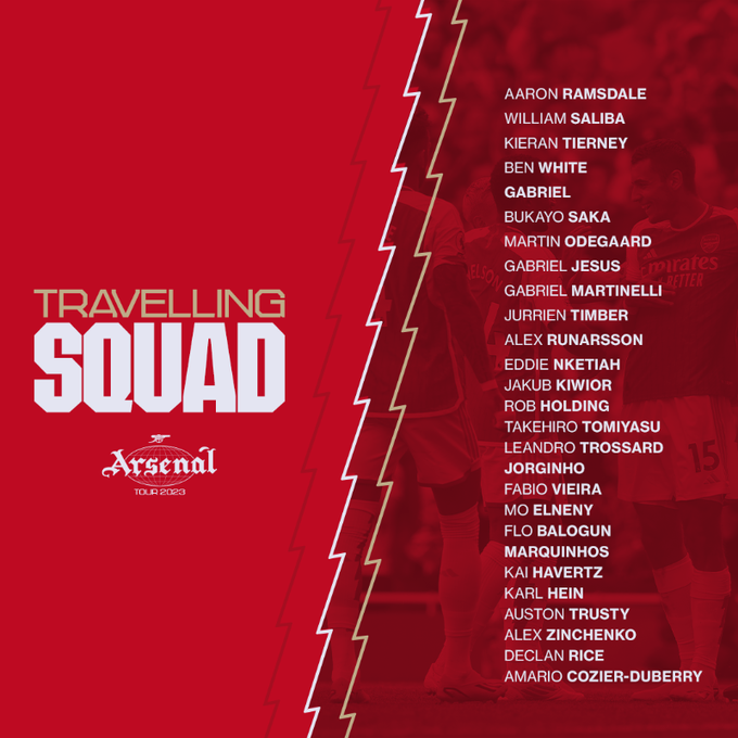 На офіційному сайті "канонірів" з'явився список із гравців, які полетіли до США разом із тренерським штабом Мікеля Артети, при цьому варто відзначити, що вінгер Ніколя Пепе, крайній захисник Седрік Суареш та центральний півзахисник Самбі Локонга опинилися поза складом Арсенала на передсезонне турне.
