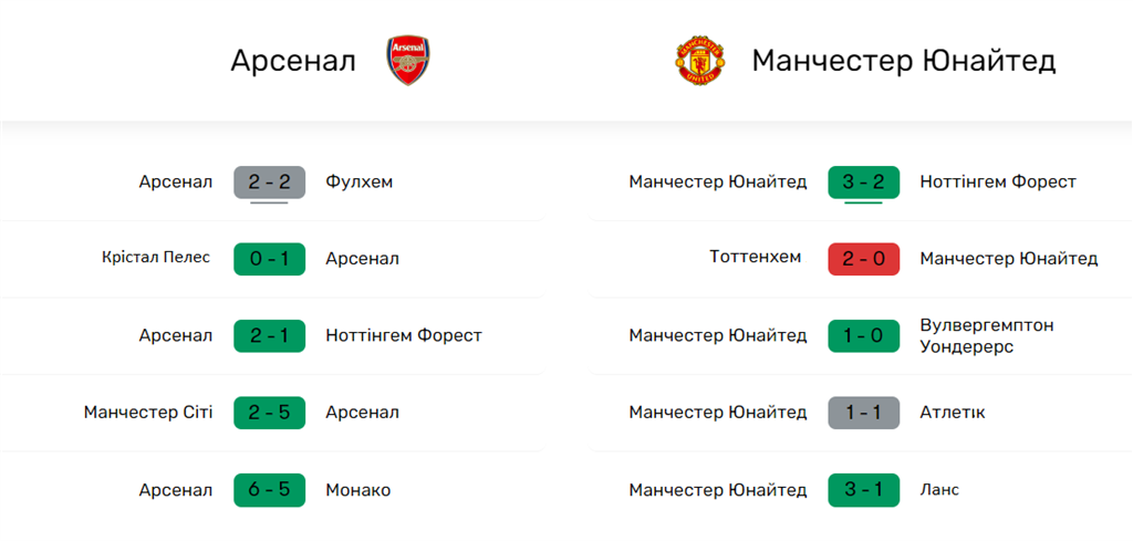Новачок Мейсон Маунт, який пропустить матч з Арсеналом через травму, поки не зміг знайти себе в системі Манчестер Юнайтед. До всього цього манкуніанці мають проблеми з реалізацією моментів, у чому вони, заради справедливості, доволі схожі зі своїм майбутнім суперником. Але найголовніша проблема — велика кількість травм, особливо на лівому фланзі оборони, через що МЮ довелося виходити на трансферний ринок в останні дні вікна і підписувати Серхіо Регілона, який виявився непотрібним Тоттенгему навіть за каденції нового головного тренера Анге Постекоглу. Загалом причин, чому Арсенал виглядає краще напередодні очного протистояння з Юнайтед, достатньо, а як буде в результаті — скоро дізнаємося.