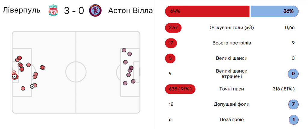 Благо для "червоних", ці проблеми були практично непомітними в матчі з Астон Віллою, яка погодилася зіграти за правилами суперника і за цими ж правилами програла. А Юрген Клопп, у свою чергу, відзначив свій 300-й ювілейний матч в АПЛ гучною перемогою.