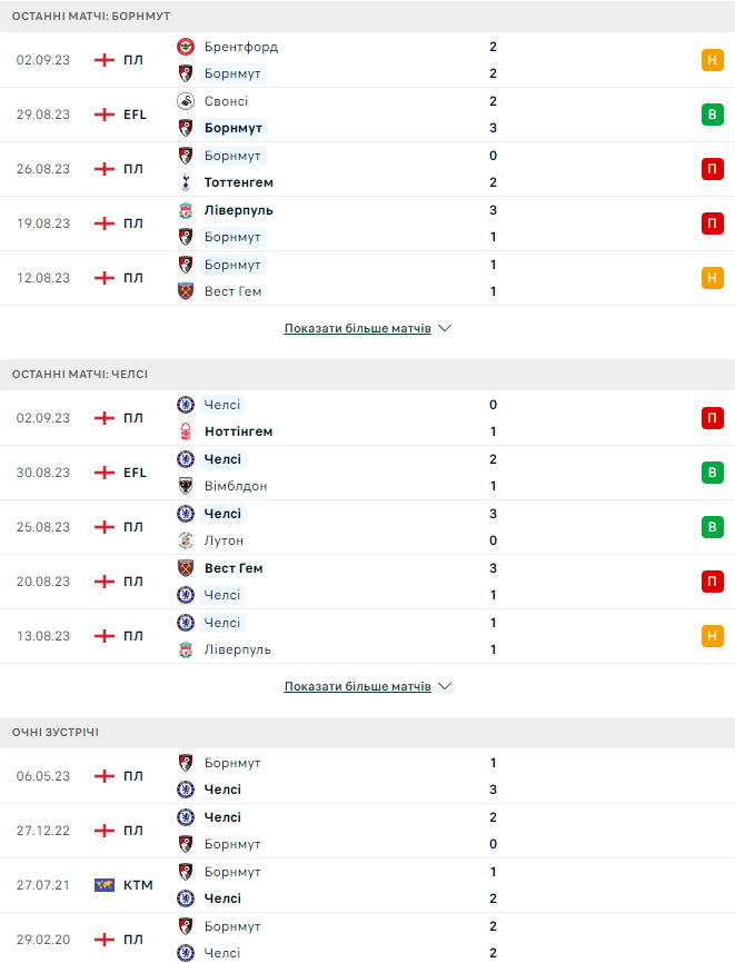 ОСТАННІ ОЧНІ МАТЧІ КОМАНД