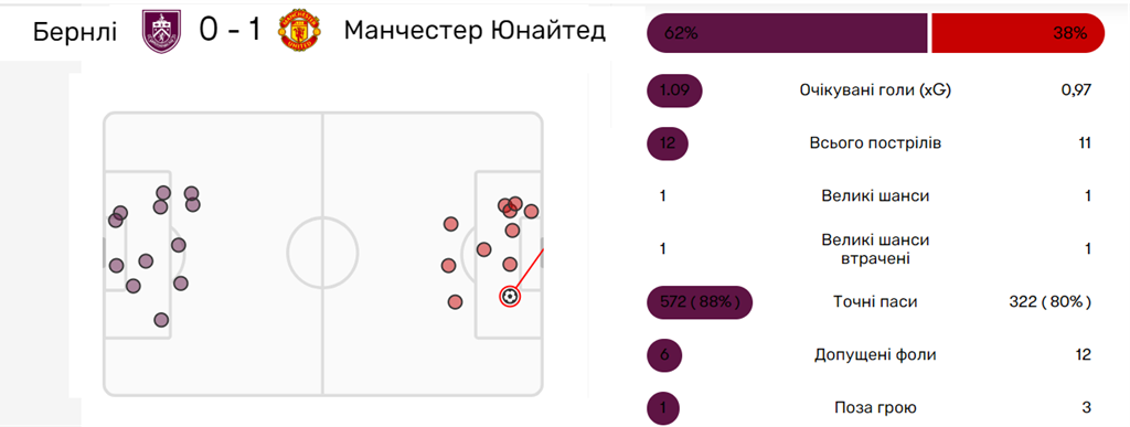 Саме в такі моменти, коли Бернлі брав перерву, щоб відновити сили для нового штурму, Манчестер Юнайтед робив свої рідкісні "уколи", граючи другим номером. Спочатку гол Джонні Еванса було скасовано через офсайд Гойлунда, а потім той самий Еванс асистував Бруну Фернандешу. Хто б міг подумати, що саме про 35-річного північноірландця ми говоритимемо у позитивному ключі? Ще кого варто відзначити в Юнайтед — це Ганнібала Межбрі, який безперечно має потенціал. Але загалом, якщо бути чесними, поєдинки нинішнього МЮ – це зовсім не те, на що хочеться витрачати свій час. І поки що не радимо це робити і вам.