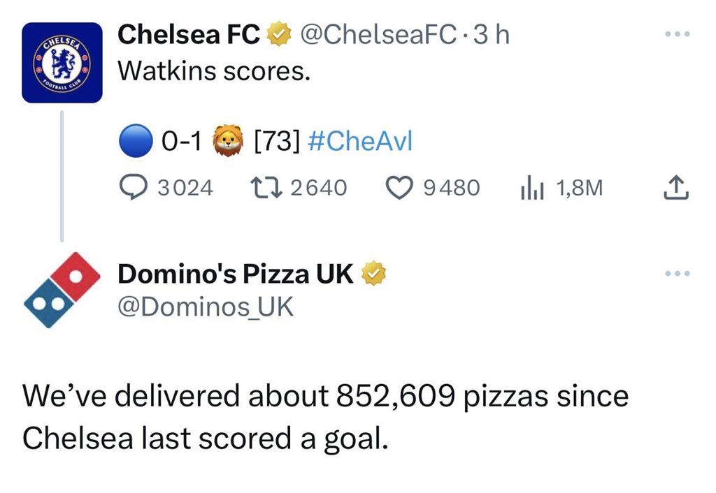 Domino's Pizza: "Ми доставили 852609 піц з того моменту, коли Челсі забив свій останній гол".
