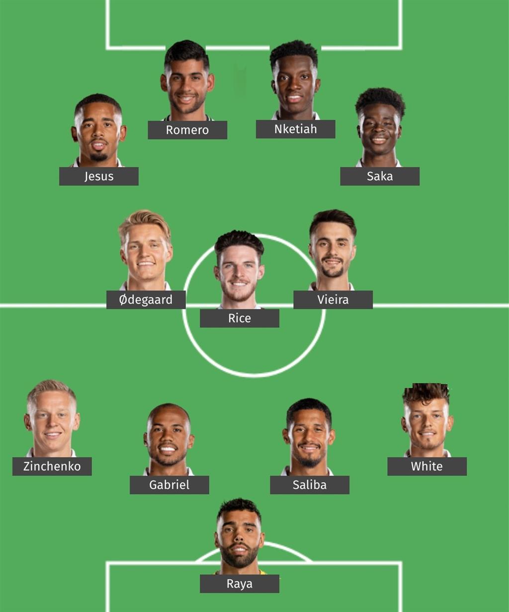Арсенал: Рая — Б. Вайт, Саліба, Габріель, Зінченко — Едегор, Райс (Жоржиньо, 46), Вієйра (Гаверц, 46) — Сака (Сміт-Роу, 90+7), Жезус (Нельсон, 77), Нкетіа.