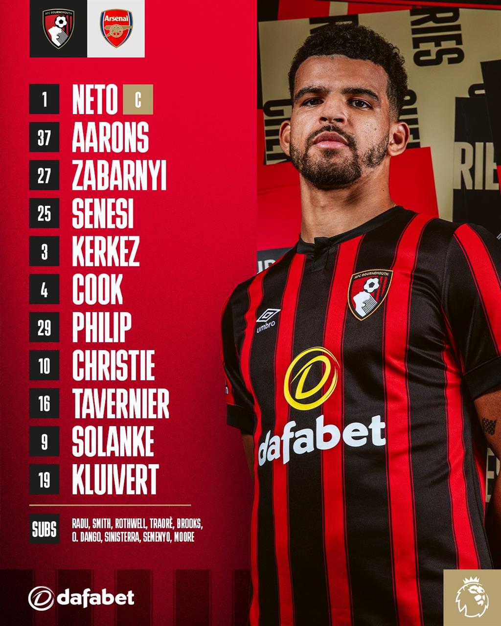 Так, з перших хвилин за "вишень" зіграє український центральний захисник Ілля Забарний, тоді як у старті "канонірів" на лівому фланзі оборони з'явиться Олександр Зінченко.
