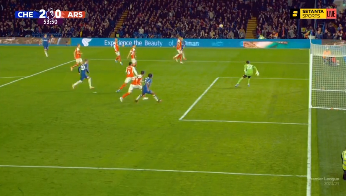 На 48-ій хвилині Мудрик скористався позиційною помилкою голкіпера Арсенала Давіда Раї та перевісив його, відправивши м'яч у ворота "канонірів".