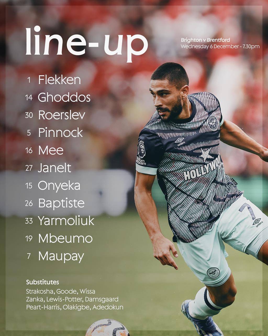 Крім того, втретє поспіль з перших хвилин за Брентфорд зіграє український центральний півзахисник Єгор Ярмолюк.