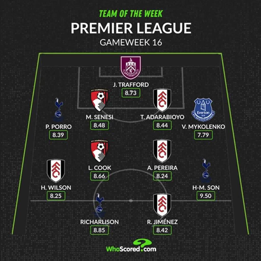 Статистичний портал WhoScored представив символічну збірну тижня за підсумками матчів 16 туру англійської Прем'єр-ліги.