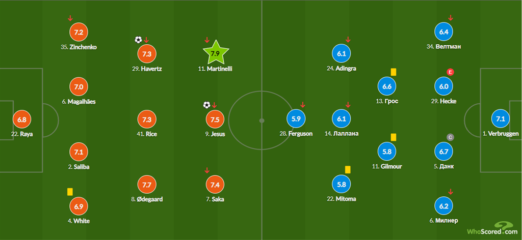 В матчі 17-го туру АПЛ Арсенал впевнено здолав Брайтон з рахунком 2:0. Українець Олександр Зінченко створив один гольовий момент, зробив дві важливі передачі та отримав оцінки 7,2 від статистичного порталу WhoScored.