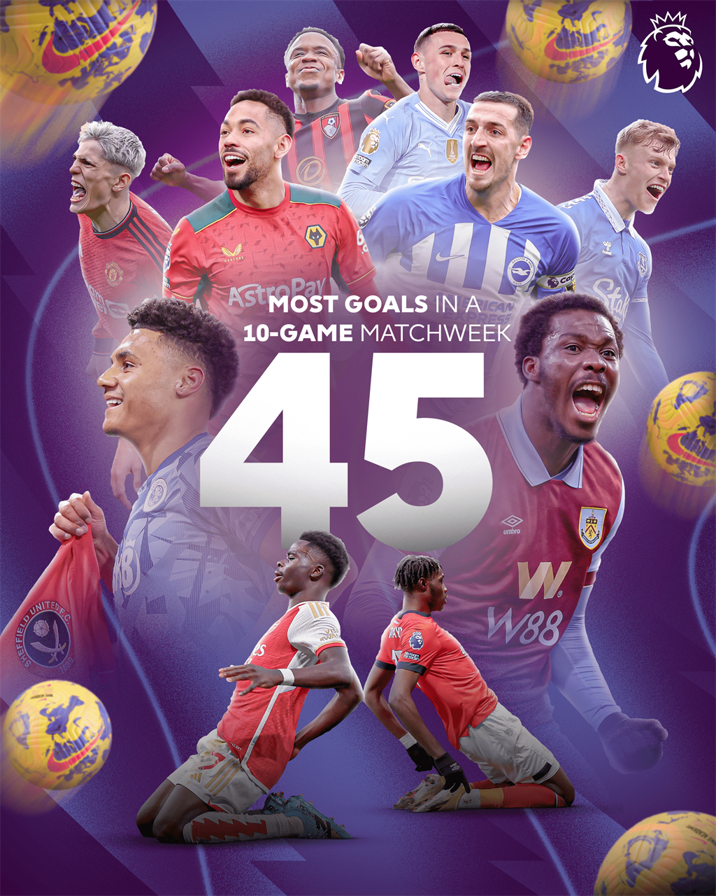 Відразу зазначимо, що 23 тур АПЛ-2023/24 став найрезультативнішим в історії сучасного формату турніру (10 матчів) — команди в загальному забили аж 45 м'ячів! Попередній рекорд був 44 голи та досягався двічі: спочатку у другому турі сезону-2020/21, а потім у 34 турі сезону-2022/23.