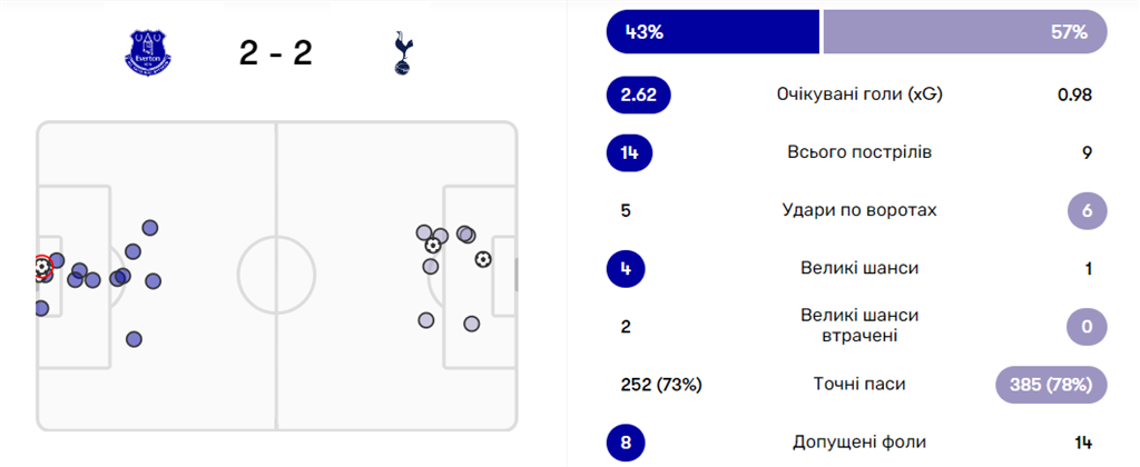 Очікувалося, що колектив Анге Постекоглу намагатиметься взяти м'яч під свій контроль, особливо на тлі недавнього повернення Джеймса Меддісона після травми, але в результаті все переросло в більшу кількість єдиноборств, боротьби за м'яч та переважно прямолінійних атак. У першому таймі Рішарлісон показав чудеса реалізації і двічі засмутив уболівальників Евертона, але обидва рази він відмовився святкувати м'ячі у ворота своєї колишньої команди — навіть десь засмутився та вибачився, після чого Гудісон Парк все ж заспівав ім'я бразильського форварда. Напевно, вибачення фанатами "ірисок" було прийнято.