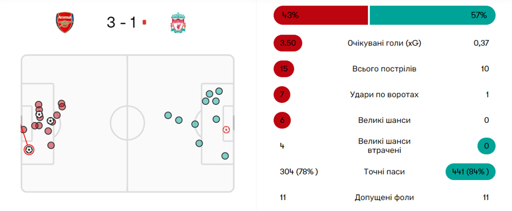 І перша причина провальної гри у виконанні Ліверпуля – це програний центр поля та неготовність протистояти такому високому пресингу. Друга причина — швидкий гол Сака, коли через активні зміщення Трента в атаку у Ліверпуля утворювалася позаду позиційна діра, а Конате не міг впоратися одночасно і з швидконогим Мартінеллі, і з в'язким Гаверцем.