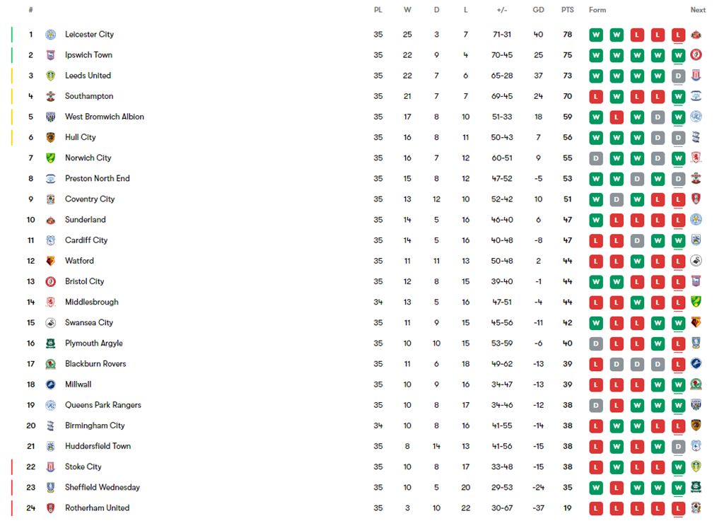 У рамках 36-го туру англійського Чемпіоншипу Сандерленд прийматиме на своєму полі Лестер Сіті, який зберігає статус лідера турнірної таблиці та головного претендента на повернення до АПЛ.