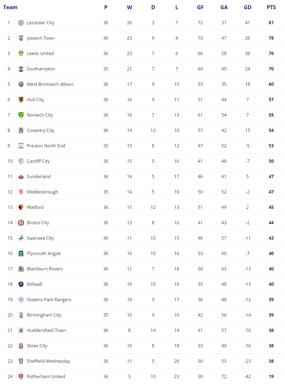 Після італійського другого дивізіону поговоримо про англійський. Серед тижня, 5-6 лютого, у Чемпіоншипі відбувся 36 тур. Турнірна таблиця наразі виглядає наступним чином: