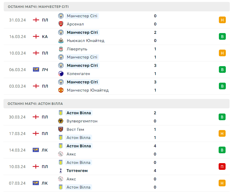 У матчі 31-го туру англійської Прем'єр-ліги на нас чекає протистояння між Манчестер Сіті та Астон Віллою, яке пройде на Етіхад Стедіум.