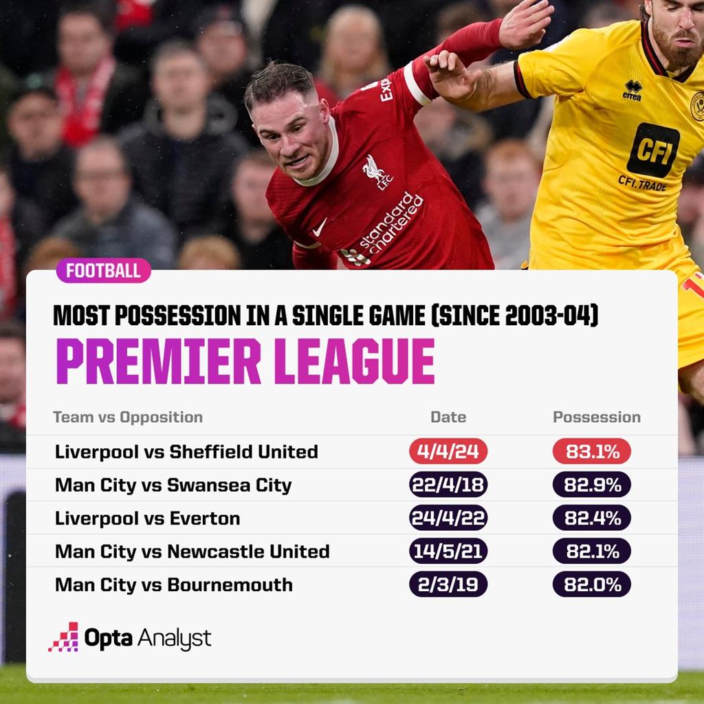 За інформацією OptaJoe, у цьому матчі команда Юргена Клоппа володіла м'ячем упродовж 83,1% ігрового часу, що є новим рекордом у матчах чемпіонату Англії.
