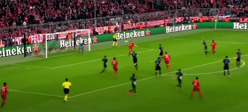 Томас Мюллер зробив рахунок 2:0 після удару в обмеженому просторі, Давід Алаба з дальньої дистанції забив третій, а Ар’єн Роббен забив четвертий гол першим дотиком. Акробатична спроба Жиру дозволила Арсеналу відповісти своїм м'ячем, але потім Мюллер знову залишив ні з чим Габріеля, і зробив рахунок 5:1 — не востаннє.