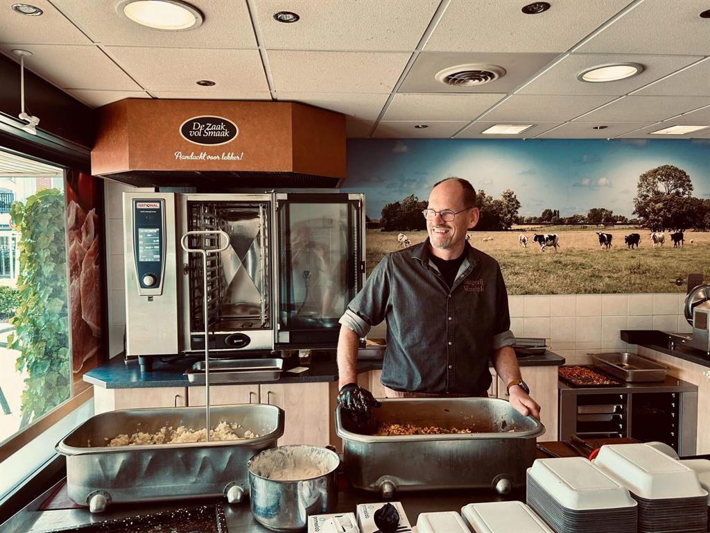 "Дуже приємний хлопець", — каже Роял Вертлінк, м'ясник з Бергенхайма, що не так зловісно, як здається, коли він змішує макарони з сиром, наповнені шматочками голландської шинки, у сталевій ванні на прилавку свого магазину. "Він повертається час від часу, і ніхто на нього не звертає уваги. Ми не такі".