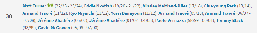 Попереднім "власником" 30-ки в Арсеналі був голкіпер Метт Тернер.