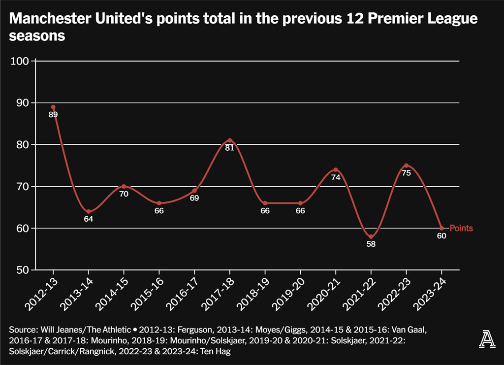 Юнайтед жодного разу з 2013 року не брав участі у справжній боротьбі за титул, що тривала б до травня, і лише п’ять разів завершував сезон у топ-4 після відходу Фергюсона. Колишній віце-голова клубу Ед Вудворд якось сказав: "Результати гри насправді не мають значного впливу на комерційний бік бізнесу". Проте вболівальники мають повне право запитувати, чому їхній клуб не може досягти успіху і на полі, і в бізнесі.