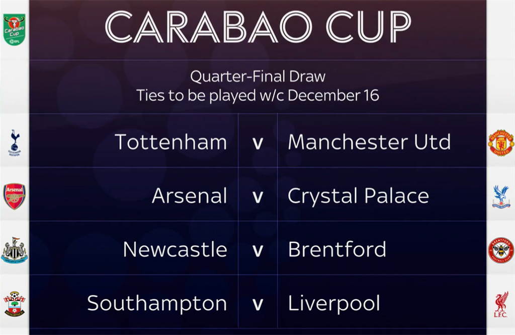 Нагадаємо, що до чвертьфіналу Карабао Кап вийшли наступні команди: Саутгемптон, Брентфорд, Ліверпуль, Крістал Пелес, Манчестер Юнайтед, Ньюкасл Юнайтед, Арсенал та Тоттенгем.