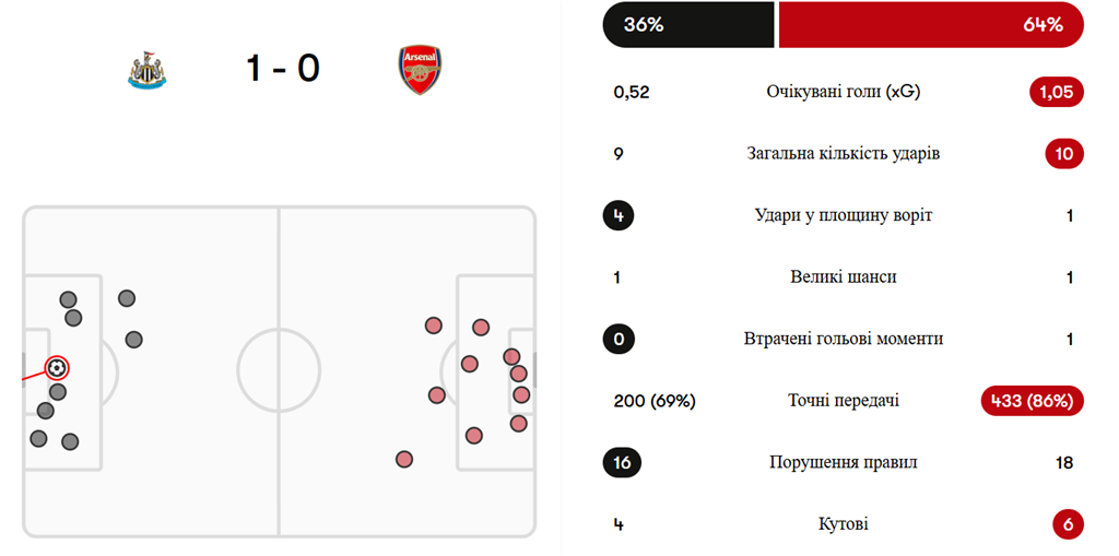 Той випадок, коли Мікель Артета начисто програв тактичне протистояння своєму колезі Едді Гау. Більше того, тренерський штаб "канонірів" в цілому й не мав потрібних ресурсів для того, щоб довести хоча б одну свою спробу затяжної атаки до небезпечного удару. Тут, звичайно, мова йдеться в першу чергу про тривалу відсутність Мартіна Едегора, без якого Арсеналу катастрофічно не вистачає креативу в просуванні атак, особливо проти таких організованих та силових команд, як Ньюкасл. І якщо раніше лондонців рятував "план Б" у вигляді їхніх кутових, то цього разу цей козир десь загубився у рукаві.
