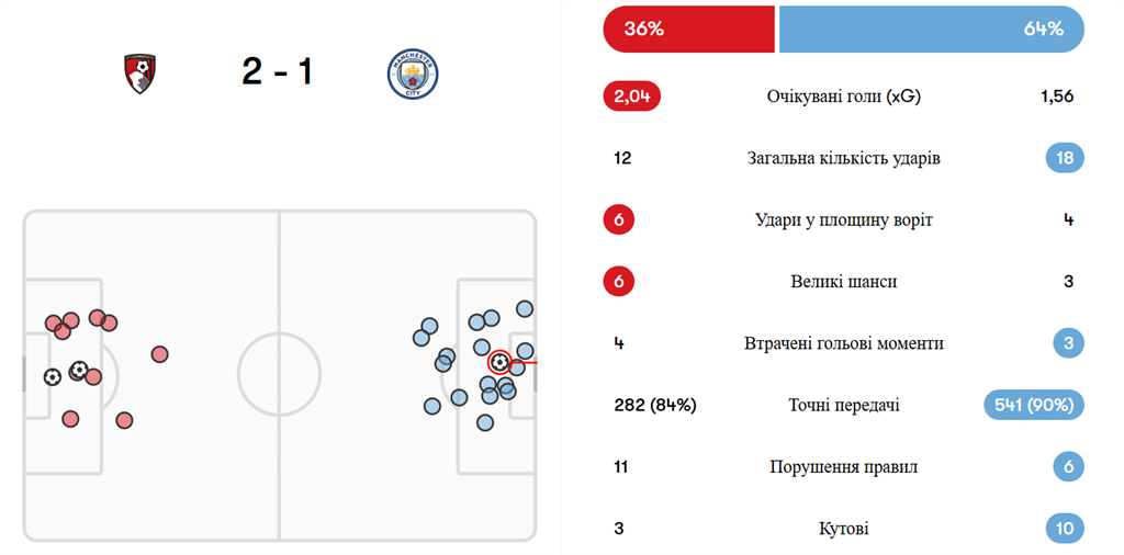 Манчестер Сіті намагався грати проти Борнмута у свою гру, але зірковий Ерлінг Голанд виявився нездатним протистояти надійній парі габаритних захисників "вишень" в особі нашого Іллі Забарного та Маркоса Сенесі, які "вимкнули" норвежця і змусили "містян" грати фактично у меншості. Андоні Іраола не став вигадувати нічого нового і просто зробив те, що вже неодноразово практикувалося у проблемних для Сіті матчах. Сезон обіцяє бути цікавим – це точно. Вже у двох топів проблеми з кондиціями.