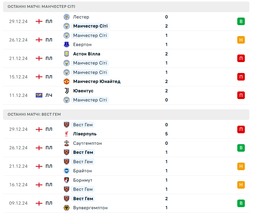 У рамках 20-го туру англійської Прем'єр-ліги-2024/25 на нас чекає протистояння між Манчестер Сіті та лондонським Вест Гемом, яке відбудеться на Етіхад Стедіум.