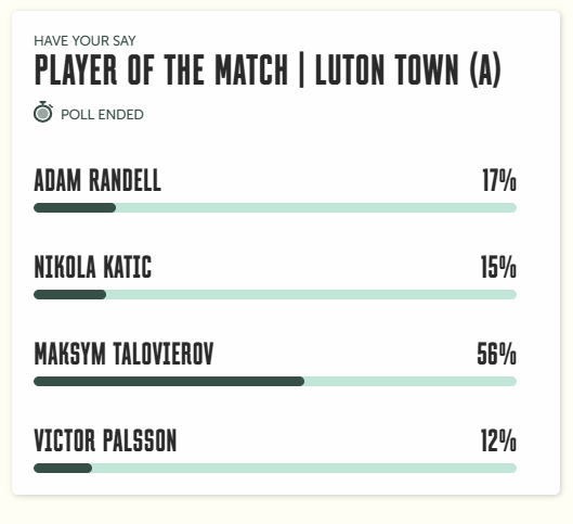 За підсумком матчу поміж уболівальниками Плімута було проведено традиційне голосування на офіційному сайті з метою визначити найкращого гравця матчу в складі їхньої команди.