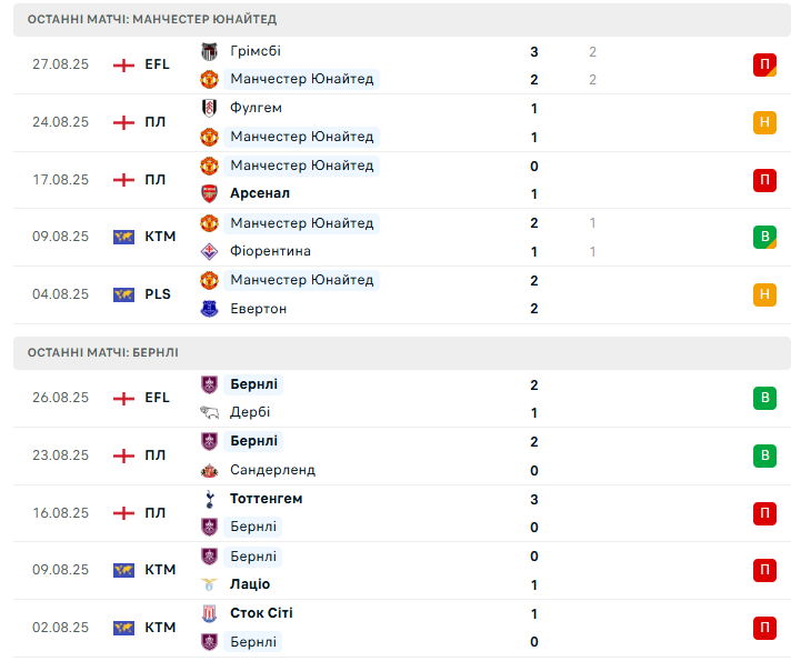 Аморім має лише 35,5% перемог на посаді тренера Юнайтед — це найгірший показник серед наставників клубу з часів Алекса Фергюсона. Вболівальники все голосніше говорять про зміни, але поки що наставник отримає шанс довести свою спроможність у матчі проти "бордових". Водночас варто пам’ятати, що Манчестер Юнайтед уже 23 матчі поспіль не програє командам, які щойно піднялися з Чемпіоншипу. Ця серія може стати психологічною опорою. Втім, статистика домашніх ігор залишається тривожною: лише три перемоги за останні 13 матчів на Олд Траффорд.
