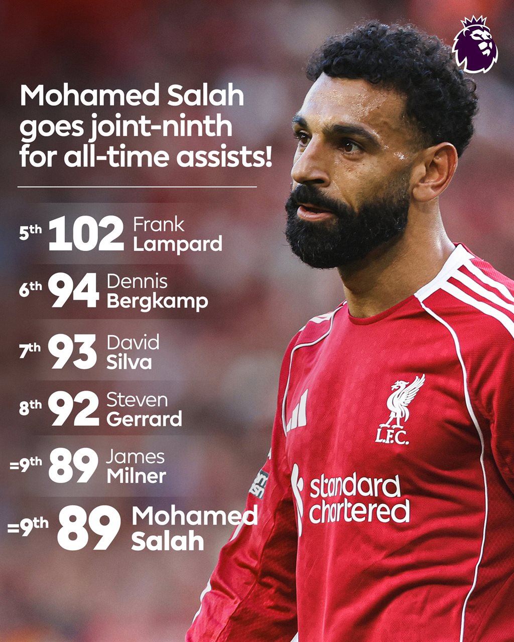 На 10-й хвилині 247-го в історії дербі Мерсисайду 33-річний єгиптянин віддав гольову передачу на Раяна Гравенберха, який відкрив рахунок у поєдинку. Для Салаха цей асист у чемпіонаті Англії був 89-м.