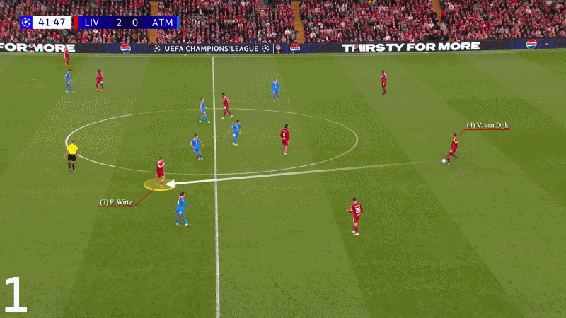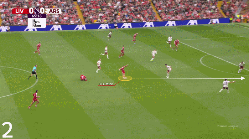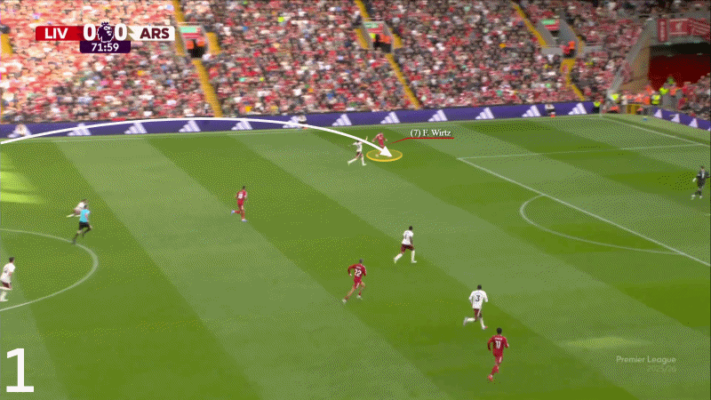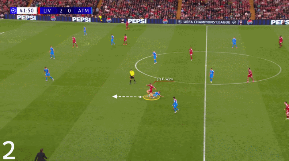 Також дотики Вірца розподілені по полю значно ширше, ніж у типової "десятки" (якщо такі взагалі ще лишилися в сучасному футболі на такому рівні), і відчутно відрізняються від того, як він діяв у Леверкузені. Як показує графіка, майже вся креативність Вірца в Ліверпулі мала місце саме з лівого флангу.