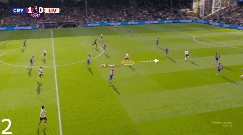 Ось приклад із початку другого тайму матчу проти Крістал Пелес — саме в такі позиції Ліверпуль і хоче виводити вартісного німця…