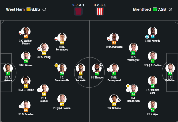 Поєдинок між Вест Гемом і Брентфордом відбувся у понеділок, 20 жовтня, на Лондон Стедіумі. Гості здобули перемогу з рахунком 0:2. Найкращим гравцем матчу за версією SofaScore став фулбек Брентфорда Мікаель Кайодо (оцінка 8.1), а WhoScored відзначив вінгера Кевіна Шаде — він забив гол і отримав оцінку 8.5.