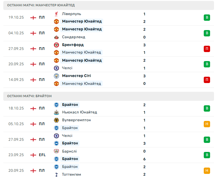 Цей Брайтон — незручний суперник для будь-кого. Вони виграли три останні виїзні зустрічі проти Манчестер Юнайтед, і лише Ман Сіті у далеких 60-х міг похвалитися довшою серією перемог на цьому стадіоні. Так, “чайки” мають проблеми в обороні (лише один “сухий” матч із 20 у лізі), але компенсують це атакою: Рюттер, Мінте, Велбек і Кадіоглу створюють загрозу з кожного флангу. Якщо додати до цього працездатність Балебf в центрі — команда має всі шанси влаштувати ще один яскравий вечір у Манчестері.