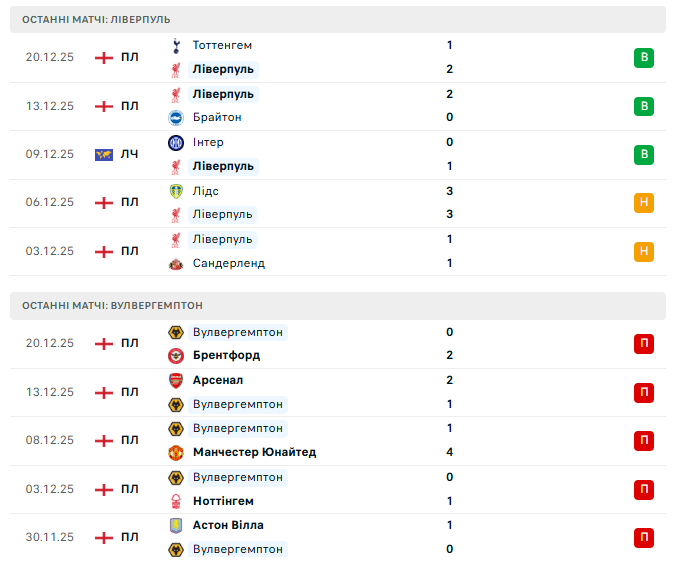 ЛІВЕРПУЛЬ — ВУЛВЕРГЕМПТОН