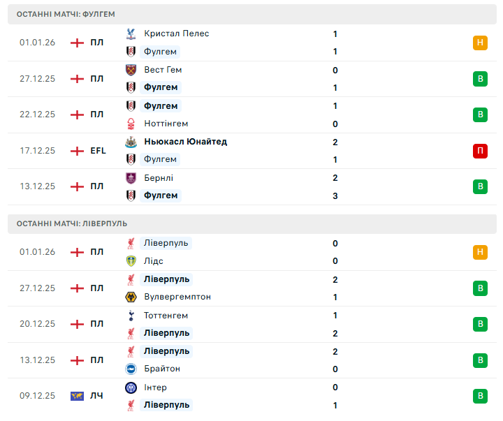 Крейвен Коттедж у першу неділю 2026 року прийме одну з найцікавіших афіш 20-го туру АПЛ — Фулгем проти Ліверпуля. Обидві команди розпочали новий рік із нічийних результатів — тепер вони зустрінуться в очному протистоянні, щоб визначити сильнішого.