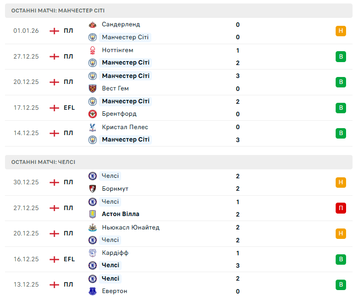 Команда Пепа Гвардіоли підходить до недільного поєдинку з серією з шести матчів без поразок у Прем’єр-лізі, хоча останній тур і приніс несподівану (?) нічию з Сандерлендом, який регулярно створює проблеми так званим фаворитам протягом цього сезону. Той результат дозволив Арсеналу відірватися на чотири очки, тож будь-яка осічка зараз для "містян" є надто дорогою. Саме тому матч із Челсі набуває для Сіті принципового значення — перемога потрібна не лише з турнірних причин, а й для збереження психологічного тиску на лідерів.