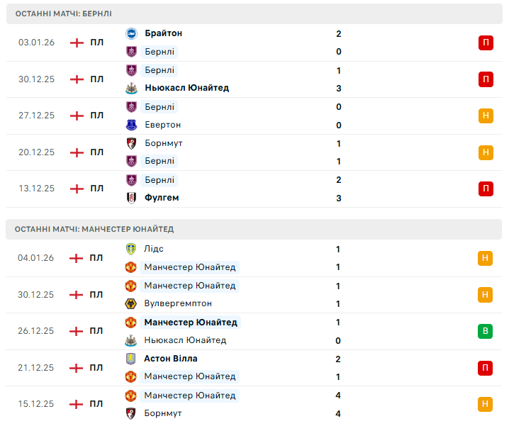 Підопічні Скотта Паркера підходять до поєдинку в украй складному становищі. Поразка 0:2 від Брайтона в минулому турі продовжила безвиграшну серію Бернлі в АПЛ до 11 матчів. За цей відрізок “бордові” зазнали дев’яти поразок, а їхня турнірна ситуація стає дедалі тривожнішою — лише 12 очок після 20 турів і 19-те місце в таблиці.