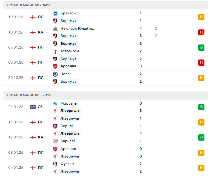 У рамках 23-го туру англійської Прем’єр-ліги Борнмут на власному полі прийматиме одного з грандів чемпіонату — Ліверпуль. Для обох команд цей поєдинок має принципове значення: господарі прагнуть стабільності та очок у боротьбі за спокійне завершення сезону, тоді як гості шукають довгоочікувану перемогу в АПЛ на старті 2026 року.