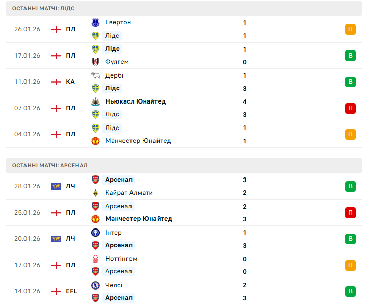 24-й тур англійської Прем’єр-ліги подарує протистояння з різними цілями, але однаково високою напругою: Лідс Юнайтед на рідному Елланд Роуд прийматиме лідера чемпіонату Арсенал. Для господарів кожне очко — крок до збереження прописки, для гостей — спроба зупинити певний спад у результатах і втримати перше місце.